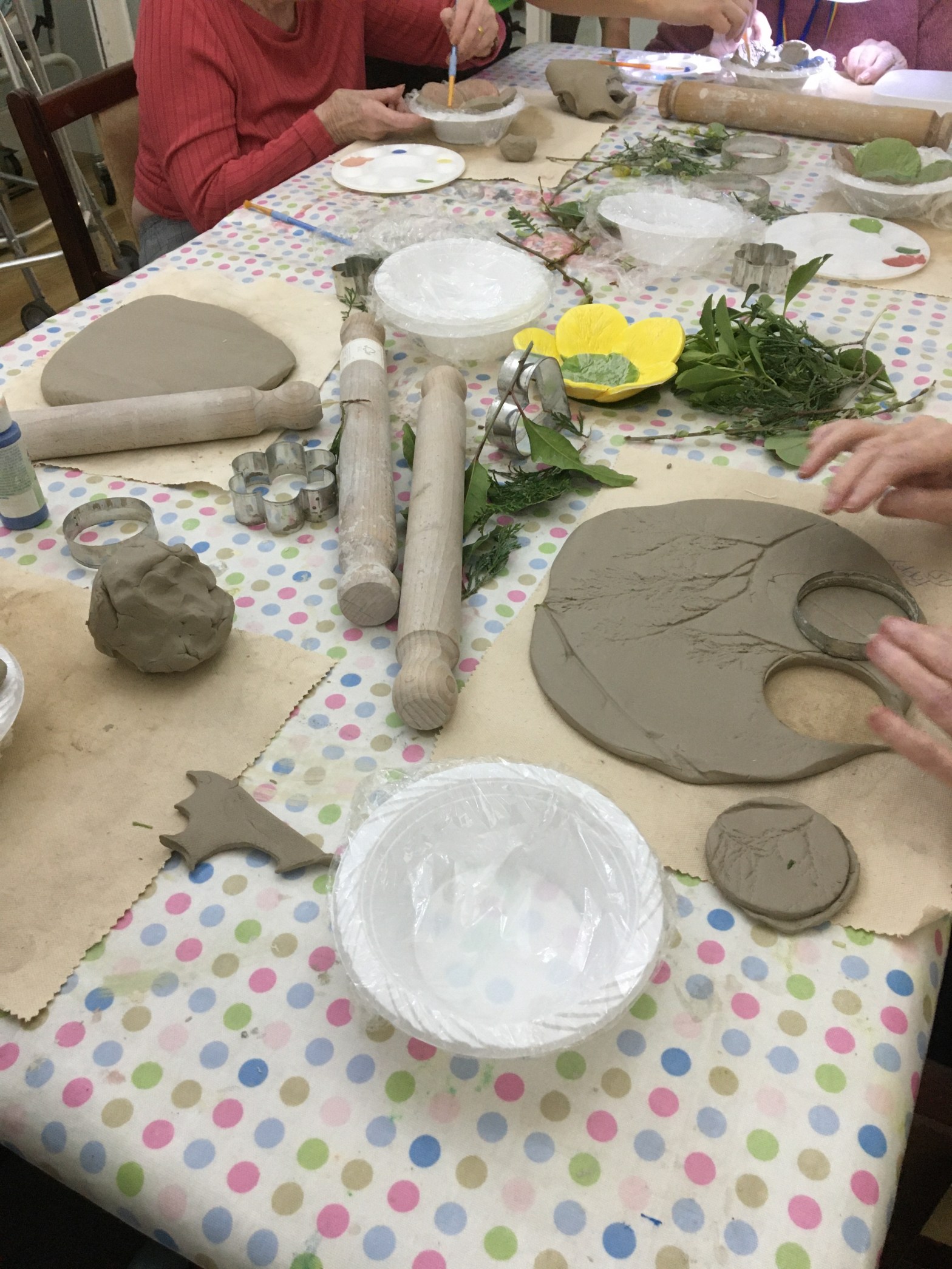 A lovely afternoon a few weeks ago at a local nursing home making little bowls out of soft clay, imprinted with leaves and painted with colourful underglazes. Can’t wait to get back to more clay making workshops soon …